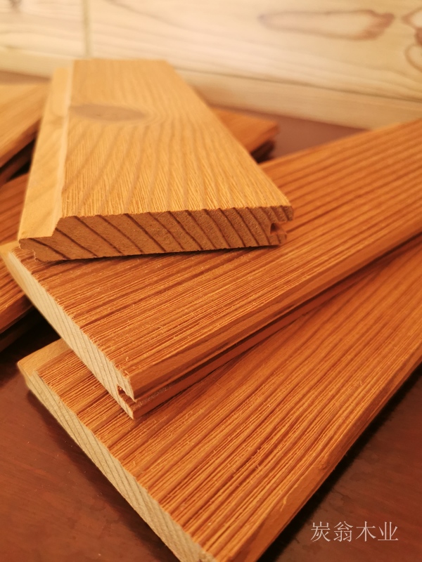 深度炭化木為在阻隔氧化與水解反應的環境中,為了改善木材的尺寸穩定性、耐久性等性能,在高達180℃~220℃溫度下80小時 對木材進行熱解改性處理的木材。炭化木,必須區別于木炭、普通干燥木材、水降解木材、表面炭化木、或進、出口檢疫中熱處理除蟲后的包裝用板材的熱改性木材。