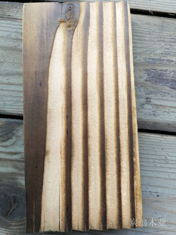 表面炭化木與深度炭化木是不同的,表面炭化木是用氧焊槍燒烤,使木材表面具有一層很薄的炭化層,對木材性能的改變可以類比木材的油漆,但可以突顯表面凹凸的木紋,產(chǎn)生立體效果。應用方面集中在工藝品、裝修材料和水族館制品。也稱為工藝炭化木、炭燒木。