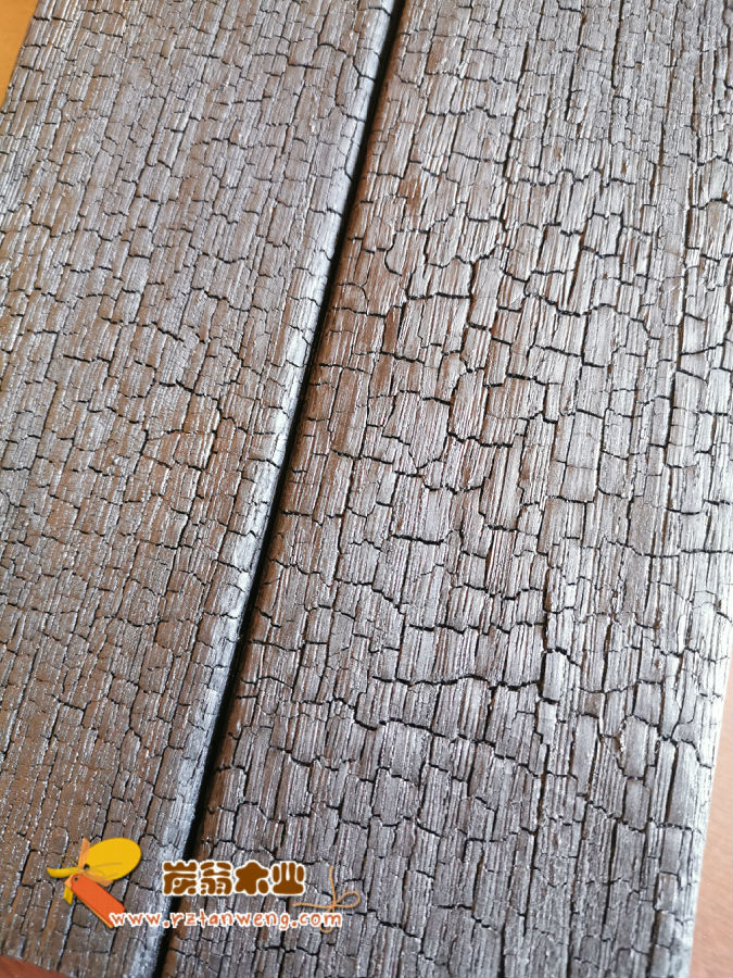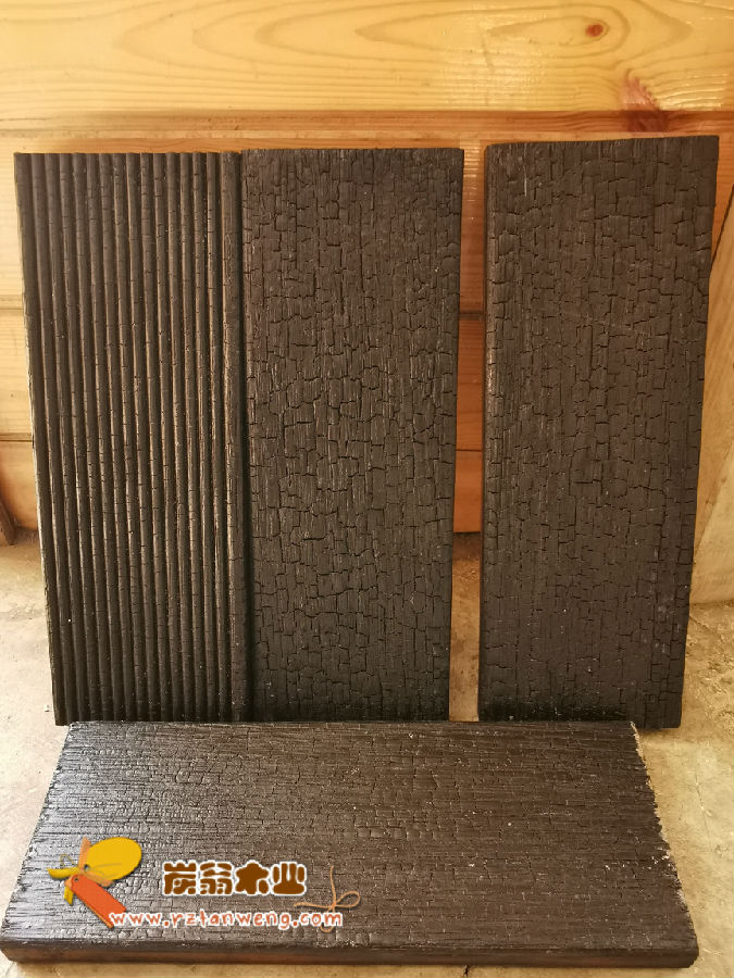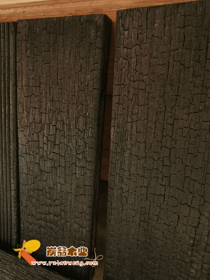木材深度碳化之后,再經(jīng)過特殊處理,木材表面呈黑色焦炭狀,深受設(shè)計(jì)師喜愛.